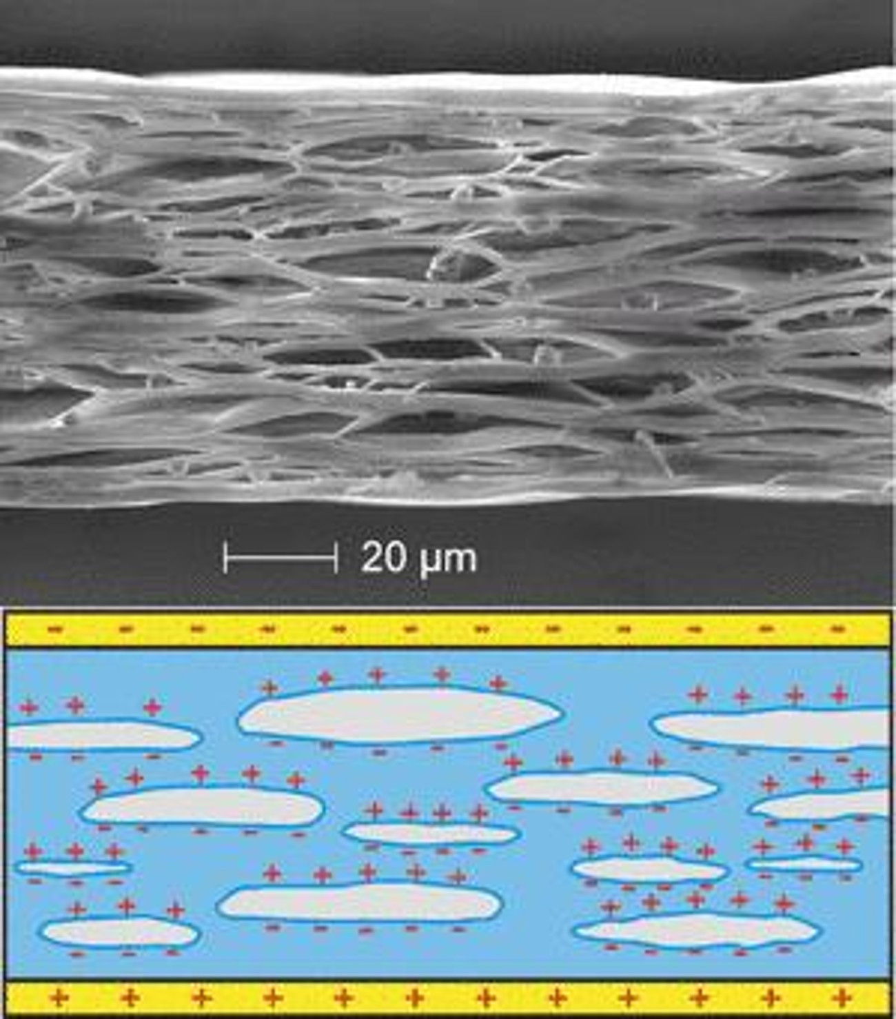 In a collaborative project with the Research Group Electroacoustics at TU Darmstadt, high sensitivity sensors that use piezoelectret films are being developed and investigated. These films are particularly suitable for the production of flat sensors (accelerometers and microphones) with high sensitivity.