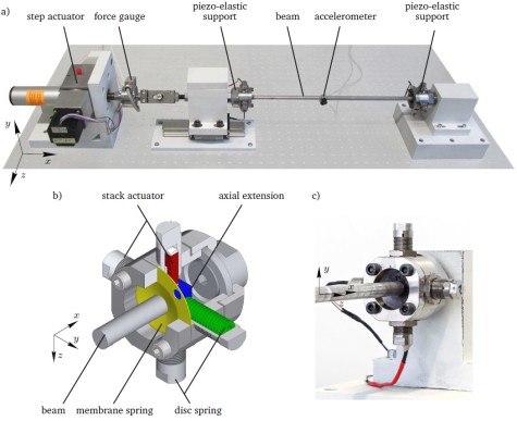 Uncertainty in the predicted lifetime of load-carrying mechanical systems in consequence of functional impairment or collapse will be controlled by autonomous approaches of structural health monitoring and control. Hence the system’s behavior is monitored and integrated actuators are used for structural control. In the subproject C2 of the Collaborative Research Center 805, uncertainty in the vibration attenuation in beam truss structures via shunted piezo-elastic beam supports is quantified and evaluated. First, the use of RL- and RLC-shunt are investigated for vibration attenuation of a single beam with circular cross section (see Figure 1).