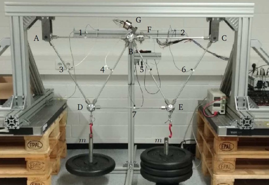 For the two-dimensional beam truss structure in figure 3, numerical investigations showed a successful vibration attenuation with piezoelectric shunt damping if data uncertainty is present. The achieved vibration attenuation with RL- and RLC-shunt as well as the corresponding uncertainty is quantified and compared for variable static loads. A lower uncertainty and at the same time higher vibration attenuation is observed when using the RLC-shunt. The current work is focused on experimental validation of those results and (non-)robust optimization (e.g. by Genetic Algorithms) to determine the positions of the piezo-elastic supports in the beam truss structure as well as to tune the shunt parameters.